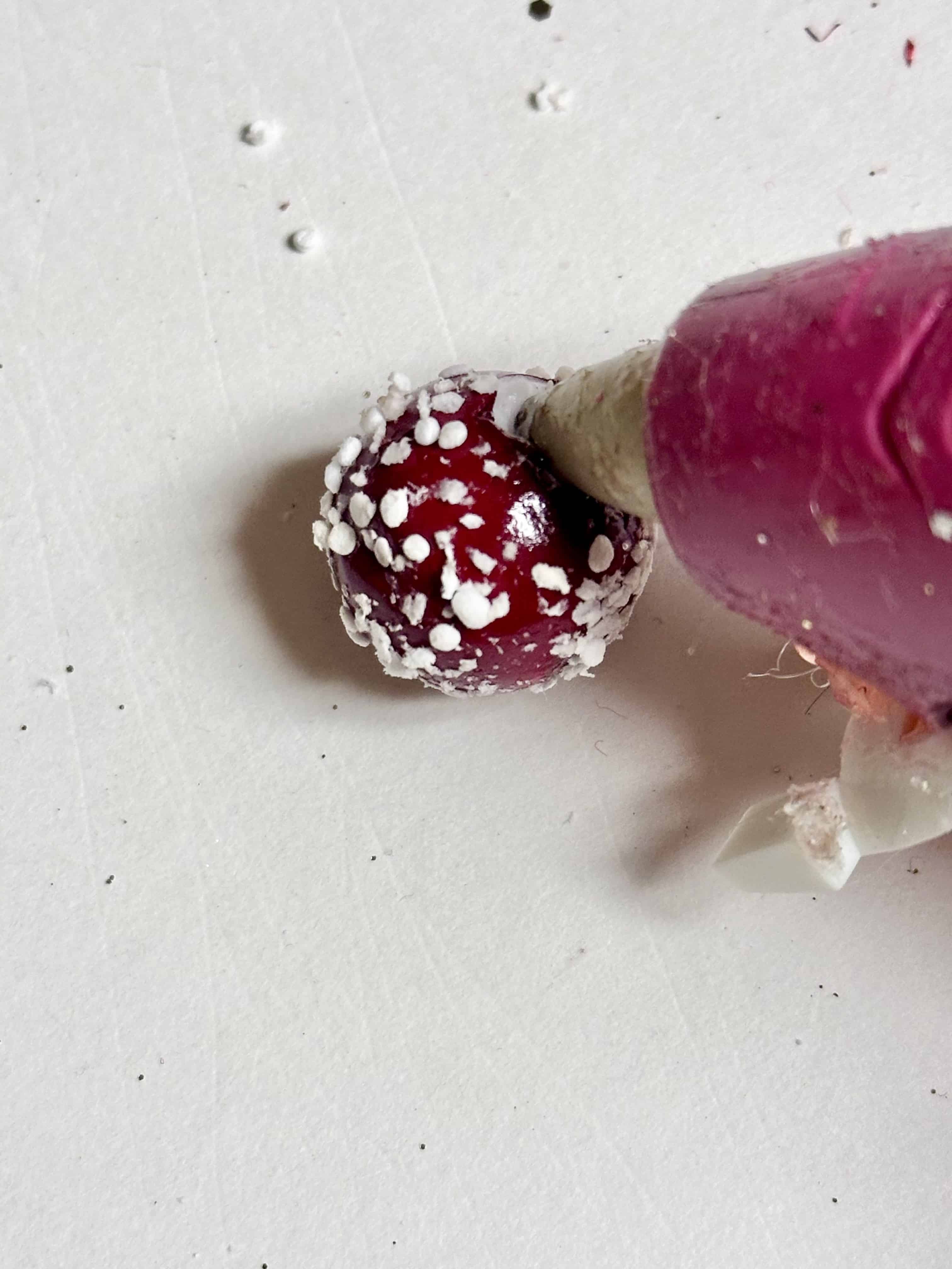 Add a dab of hot glue to the berries and then press them firmly onto the evergreen pieces. Again, depending on the berries you use and the look you want, trim them down or keep them as-is.